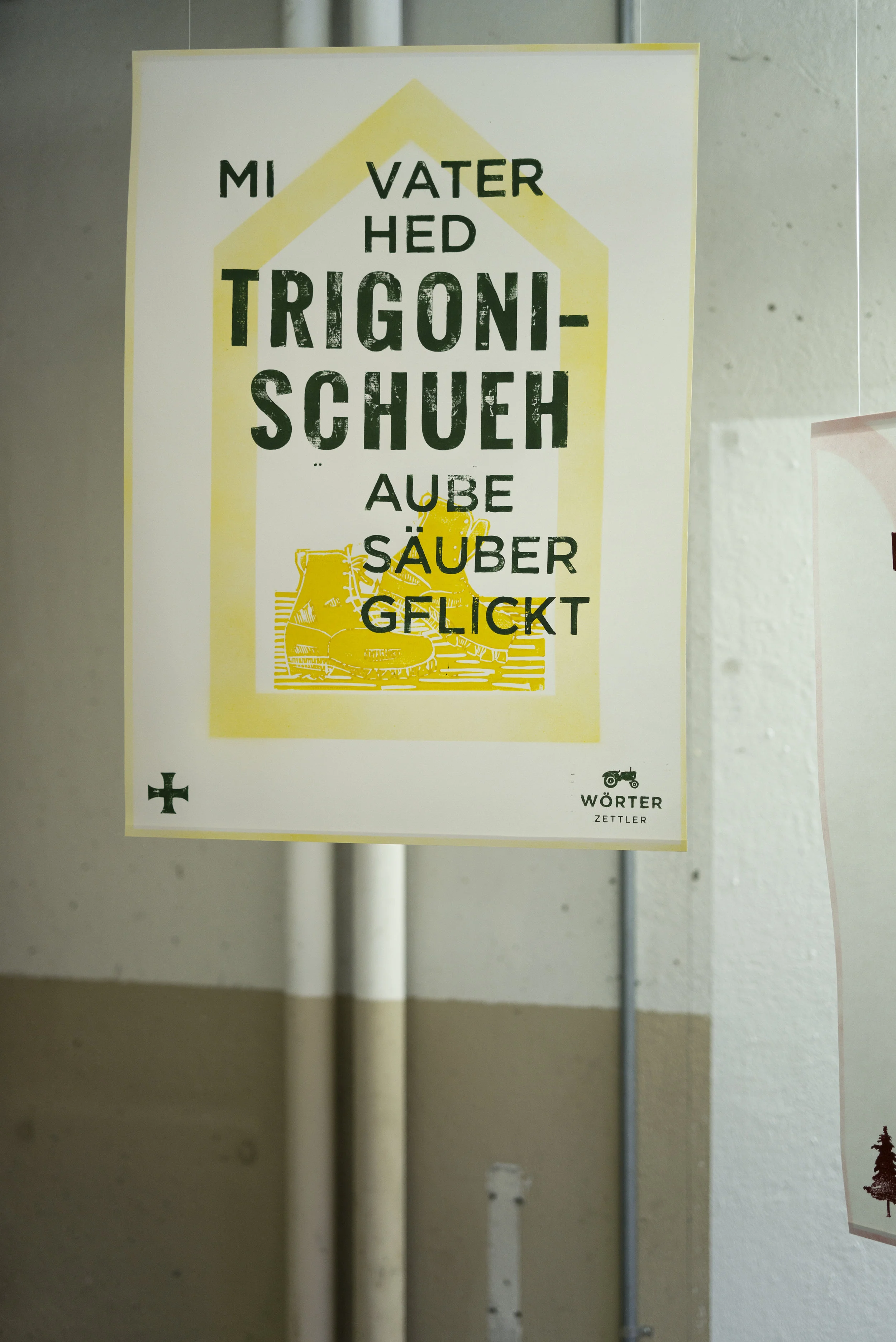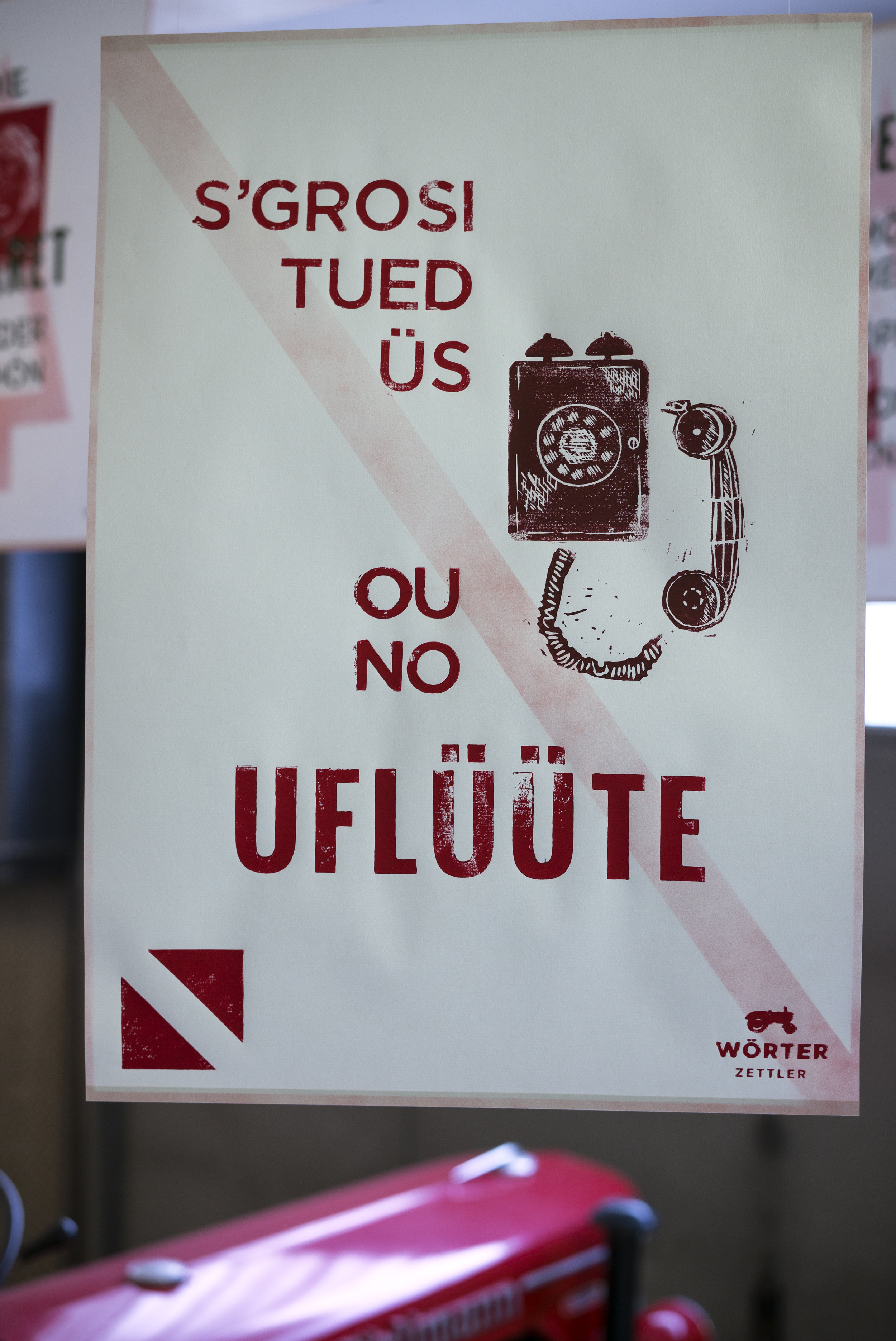 The words were used typographically to create posters, currently being exhibited in KKLB – Kunst und Kultur im Landessender Beromünster, Lucerne.